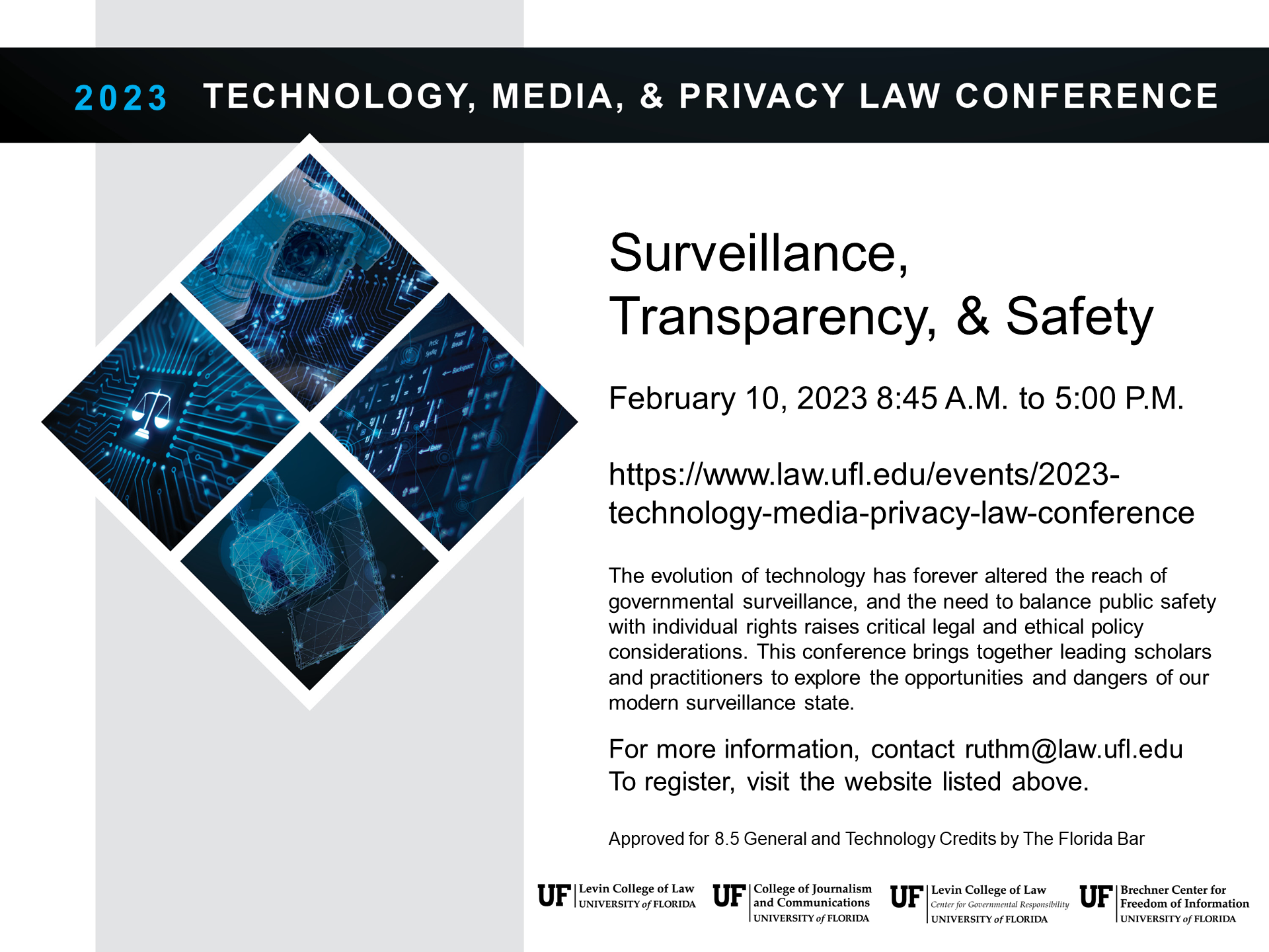 The TMPL conference is hosted by the Center for Governmental Responsibility (CGR) at the University of Florida Levin College of Law and the Brechner Center for Freedom of Information at the University of Florida College of Journalism and Communications.