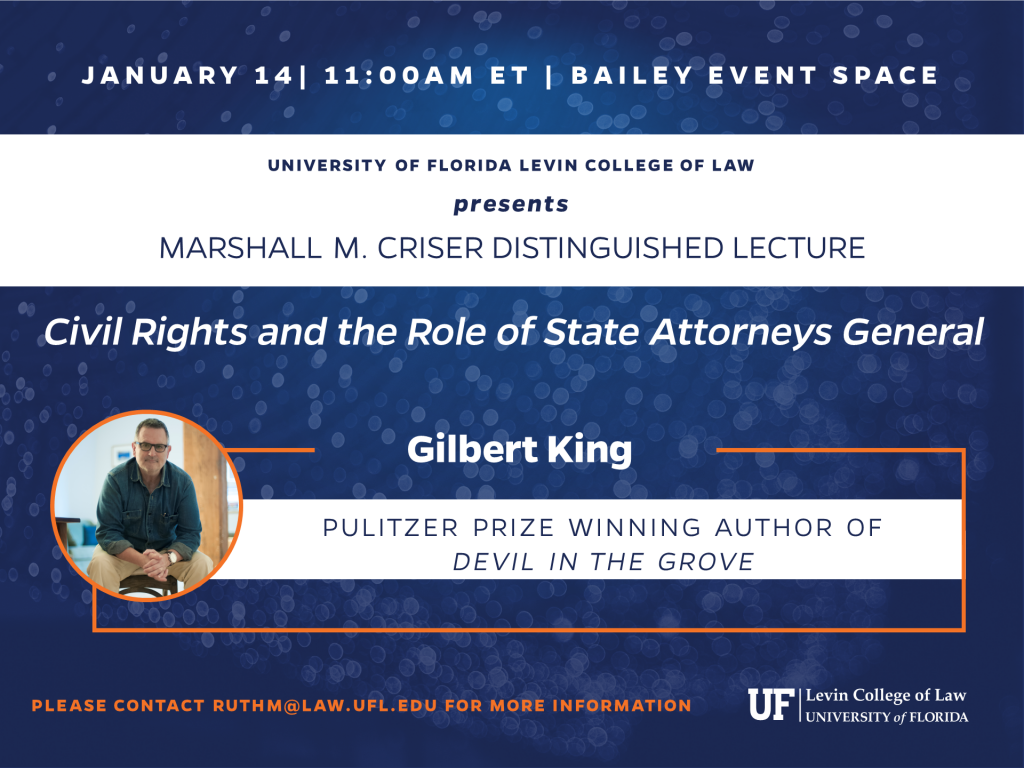 Gilbert King, author and Pulitzer Prize winner, presents. Please contact ruthm@law.ufl.edu for more information.