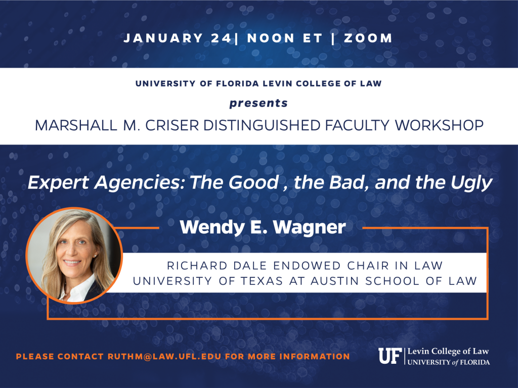 Wendy E. Wagner, Richard Dale Endowed Chair in Law, University of Texas at Austin School of Law, presents. Please contact ruthm@law.ufl.edu for more information.