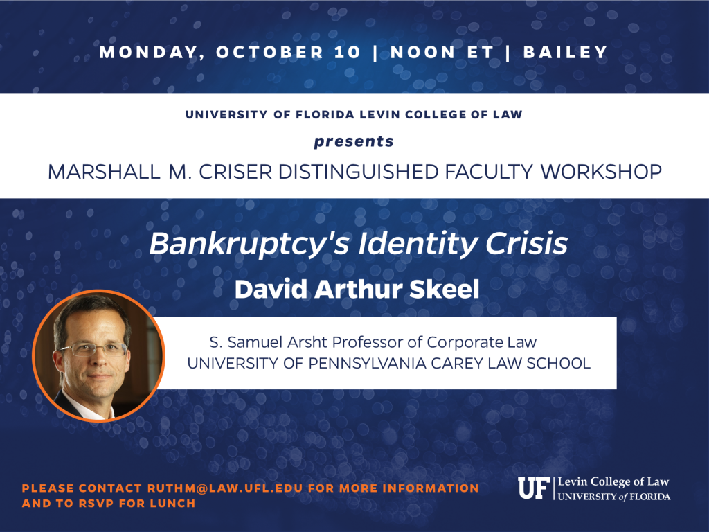 David Arthur Skeel, S. Samuel Arsht Professor of Corporate Law, University of Pennsylvania Carey Law School, presents. Please contact ruthm@law.ufl.edu for more information.