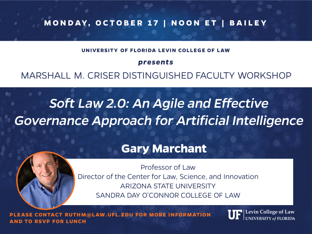 Gary Marchant, Regents Professor of Law, Arizona State University Sandra Day O’Connor College of Law, presents. Please contact ruthm@law.ufl.edu for more information.