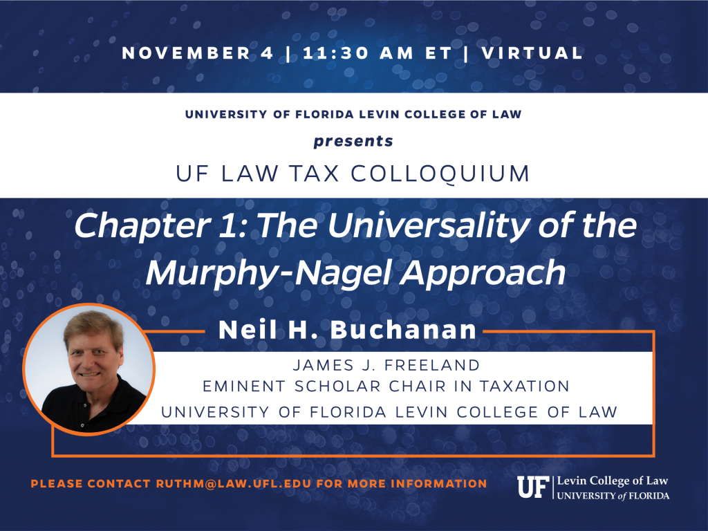 Neil H. Buchanan, James J. Freeland Eminent Scholar Chair in Taxation and Professor of Law, University of Florida Levin College of Law, presents. Please contact ruthm@law.ufl.edu for more information.
