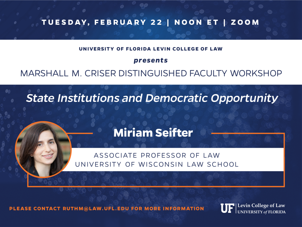 Miriam Seifter, Associate Professor, University of Wisconsin-Madison Law School, presents. Please contact ruthm@law.ufl.edu for more information.