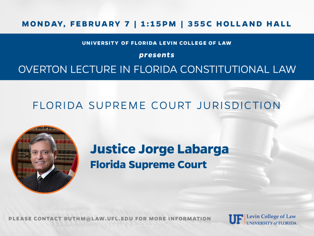 Justice Jorge Labarga, Florida Supreme Court, presents. Please contact ruthm@law.ufl.edu for more information.