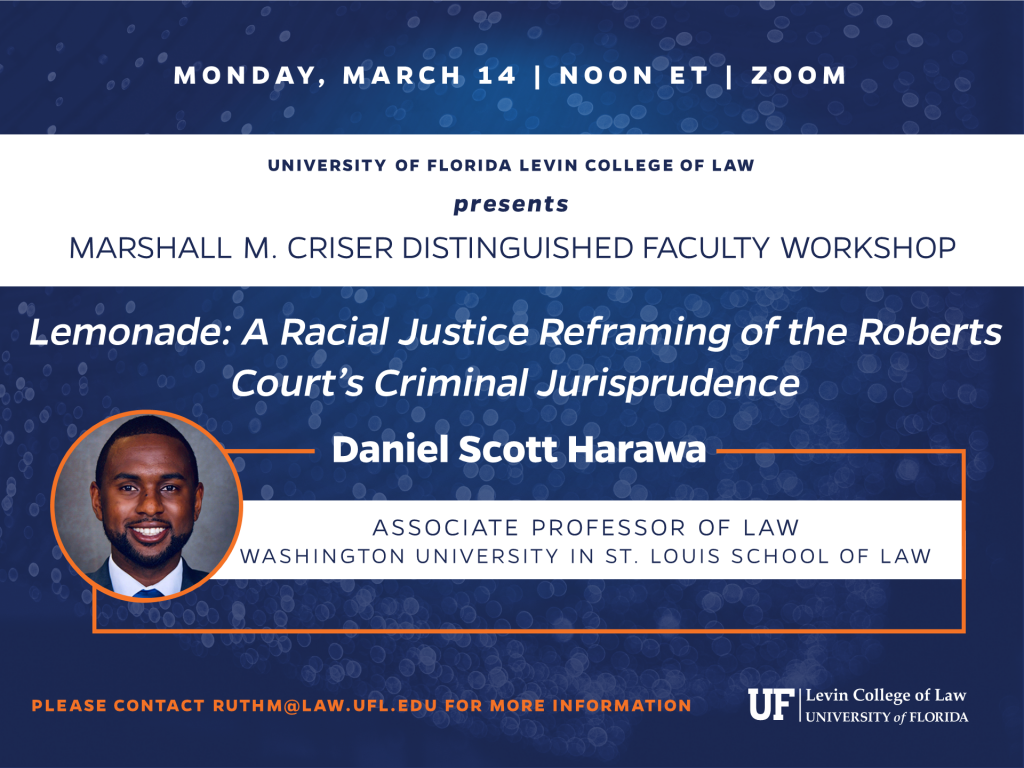 Daniel Scott Harawa, Associate Professor of Law and Director, Appellate Clinic, Washington University in St. Louis School of Law, presents. Please contact ruthm@law.ufl.edu for more information.
