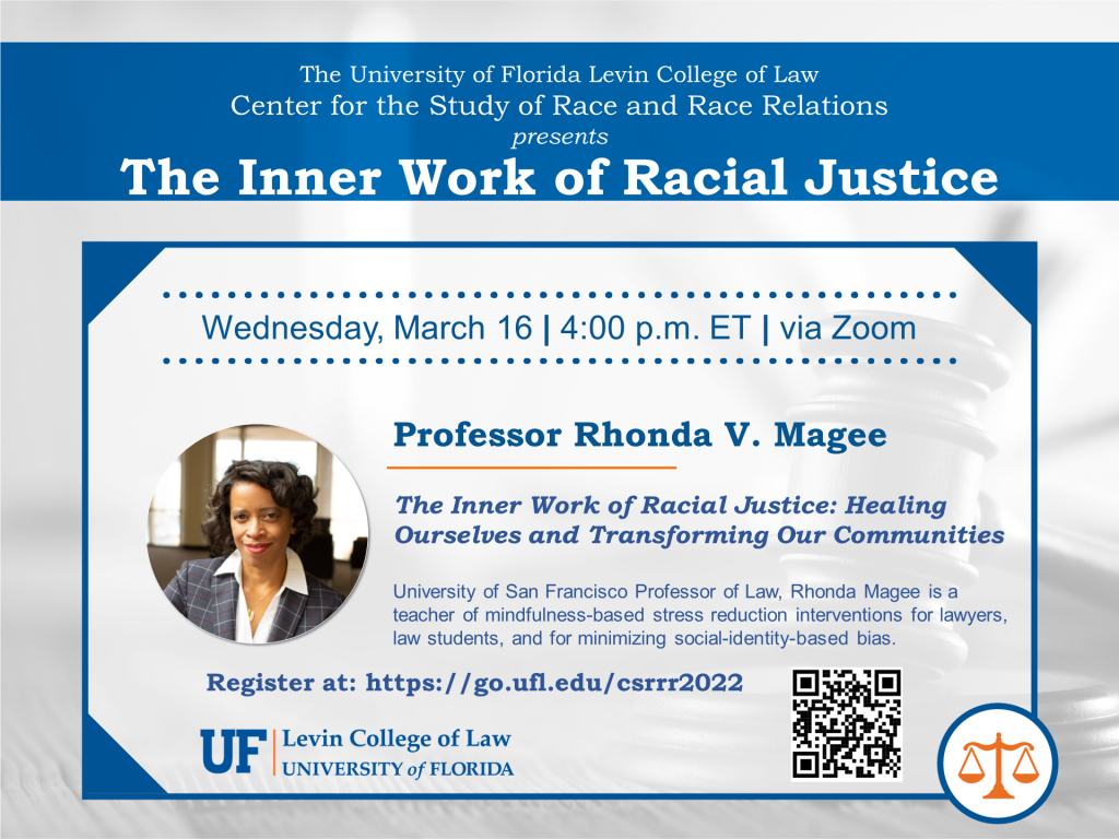 Rhonda Magee, Professor of Law and Director, University of San Francisco School of Law, delivers the Spring Lecture. Please contact ruthm@law.ufl.edu for more information.