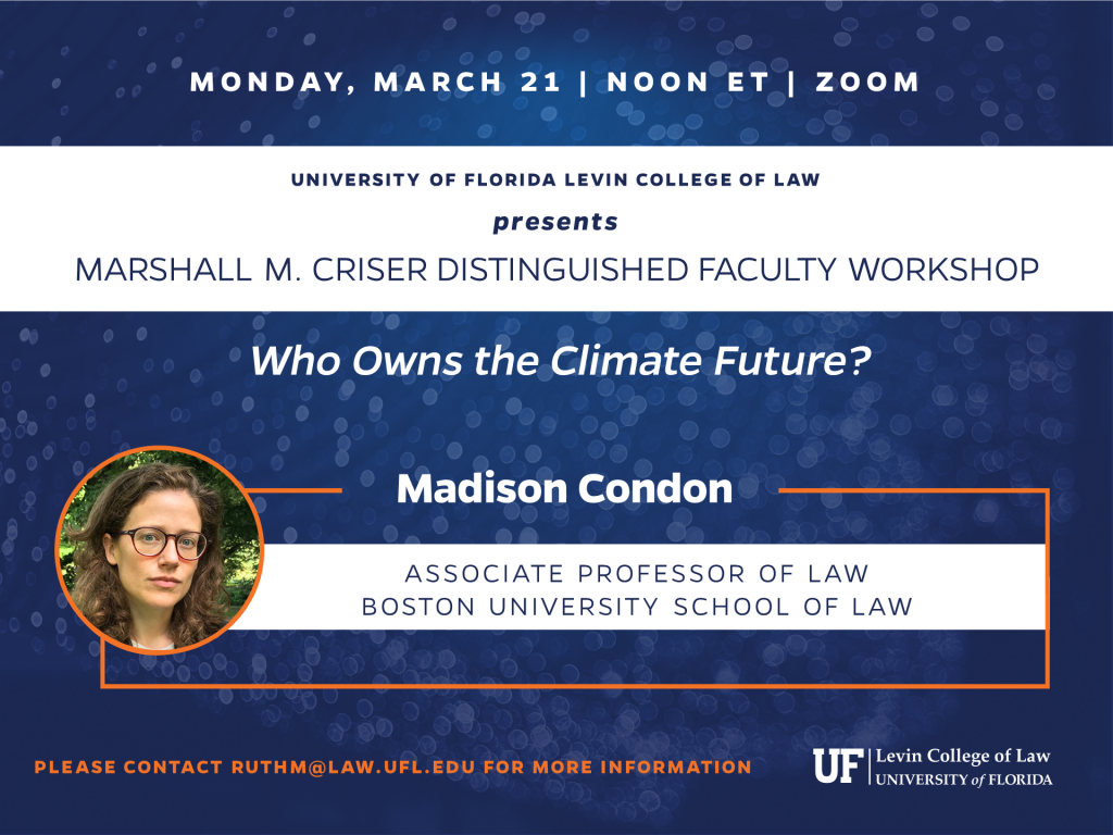 Madison Condon, Associate Professor of Law, Boston University School of Law, presents. Please contact ruthm@law.ufl.edu for more information.