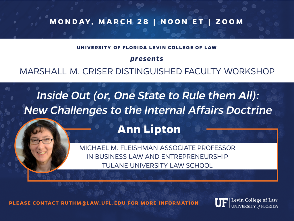 Ann M. Lipton, Michael M. Fleishman Associate Professor in Business Law and Entrepreneurship, Tulane University Law School, presents. Please contact ruthm@law.ufl.edu for more information.