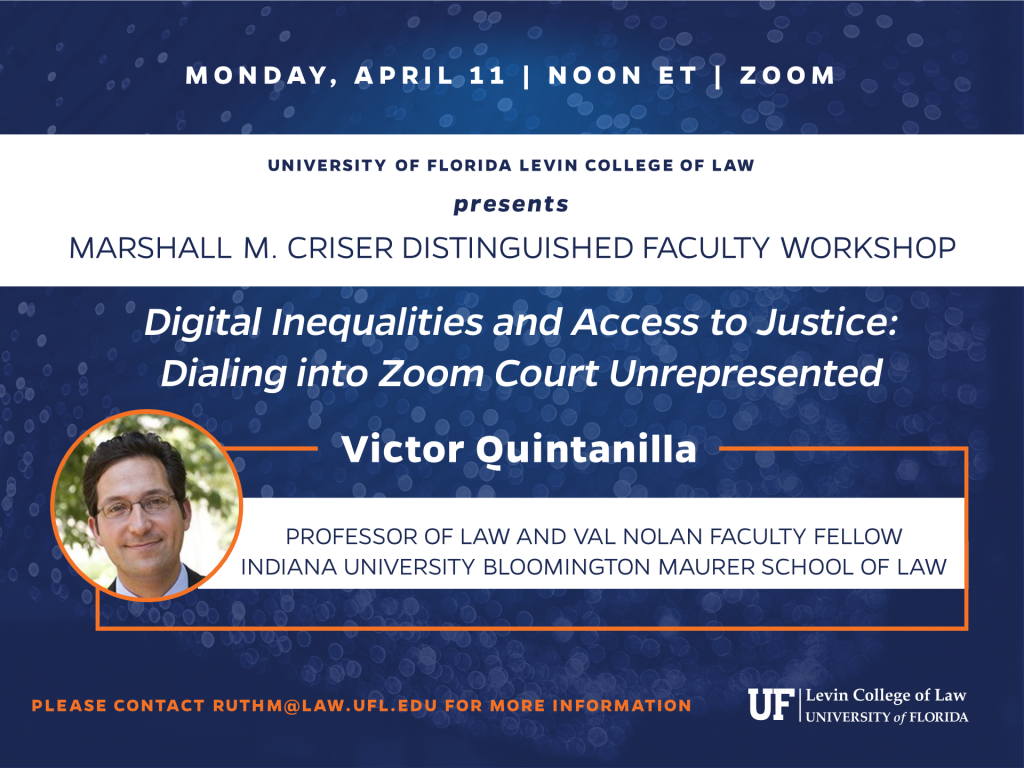 Victor D. Quintanilla, Professor of Law and Val Nolan Faculty Fellow, Indiana University Bloomington Maurer School of Law; presents. Please contact ruthm@law.ufl.edu for more information.