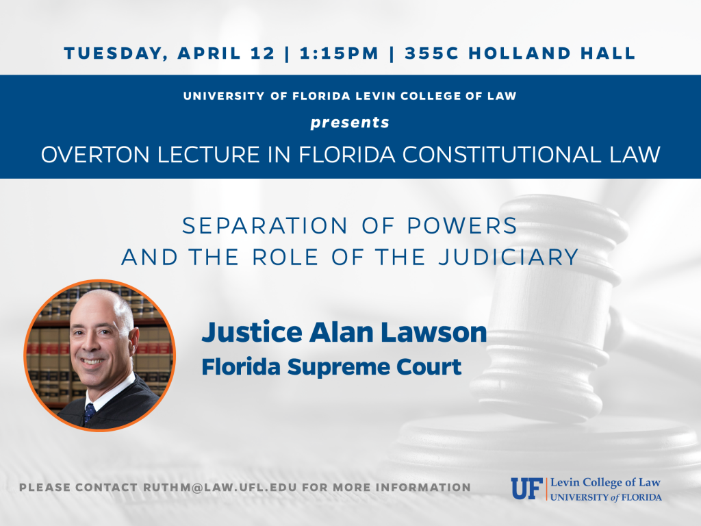 Justice Alan Lawson, Florida Supreme Court, presents. Please contact ruthm@law.ufl.edu for more information.