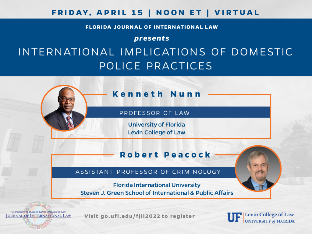 of Criminology and Criminal Justice, Florida International University Steven J. Green School of International & Public Affairs, present International Implications of Domestic Police Practices. Please contact ruthm@law.ufl.edu for more information.