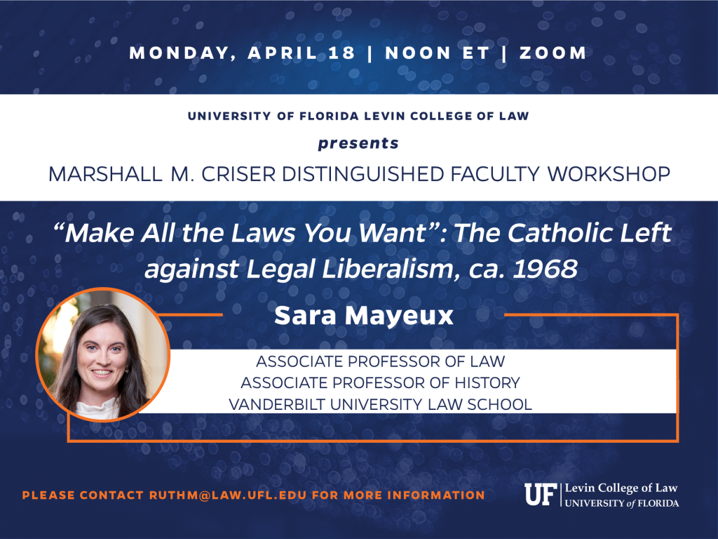 Sara Mayeux, Associate Professor of Law and Associate Professor of History, Vanderbilt University Law School, presents. Please contact ruthm@law.ufl.edu for more information.