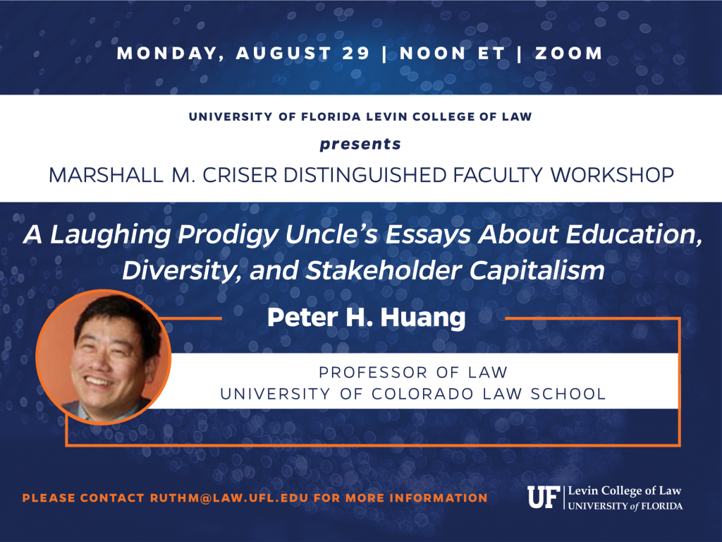 Peter H. Huang, Professor, University of Colorado Law School, presents. Please contact ruthm@law.ufl.edu for more information.