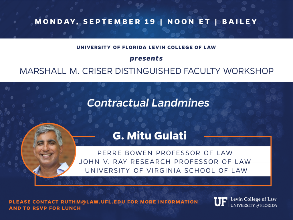G. Mitu Gulati, Perre Bowen Professor of Law and John V. Ray Research Professor of Law, University of Virginia School of Law, presents. Please contact ruthm@law.ufl.edu for more information.