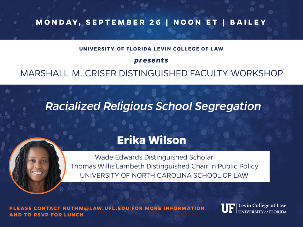 Erika K. Wilson, Professor of Law, Wade Edwards Distinguished Scholar, Thomas Willis Lambeth Distinguished Chair in Public Policy, and Director of Clinical Programs, University of North Carolina School of Law, presents. Please contact ruthm@law.ufl.edu for more information.