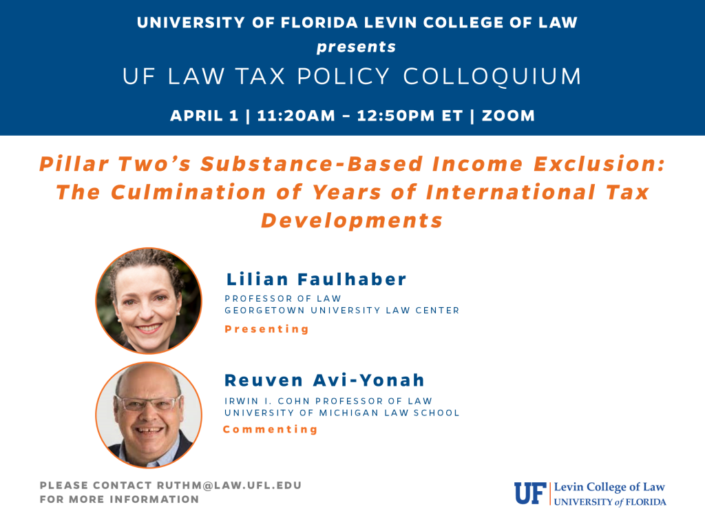 Lilian Faulhaber, Professor of Law, Georgetown University Law Center, presents; Reuven S. Avi-Yonah, Irwin I. Cohn Professor of Law, University of Michigan Law School, comments. Please contact ruthm@law.ufl.edu for more information.