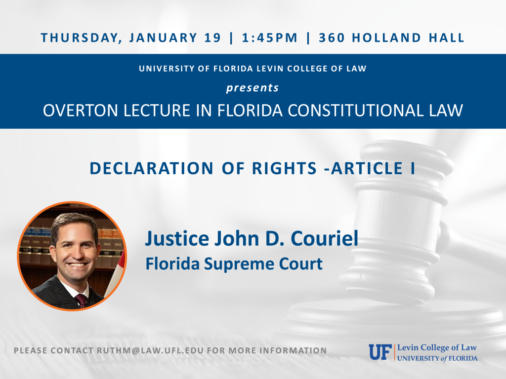 Justice John D. Couriel, Florida Supreme Court, presents. Please contact ruthm@law.ufl.edu for more information.