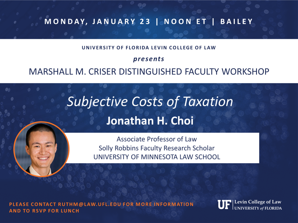 Jonathan H. Choi, Associate Professor of Law, University of Minnesota Law School, presents. Please contact ruthm@law.ufl.edu for more information.