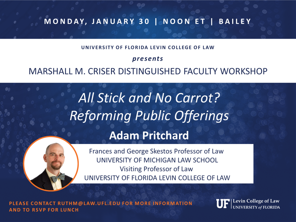 Adam C. Pritchard, Frances and George Skestos Professor of Law, University of Michigan Law School; and Visiting Professor of Law, University of Florida Levin College of Law, Spring 2023; presents. Please contact ruthm@law.ufl.edu for more information.