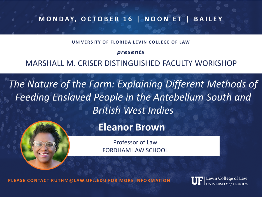 Eleanor Brown, Professor of Law, Fordham Unversity School of Law, presents. Please contact ruthm@law.ufl.edu for more information.