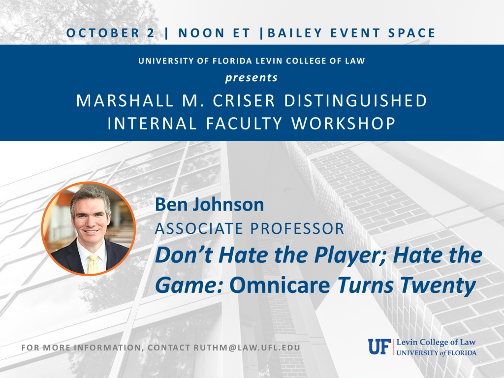 Ben Johnson, Associate Professor of Law, Unversity of Florida Levin College of Law, presents. Please contact ruthm@law.ufl.edu for more information.