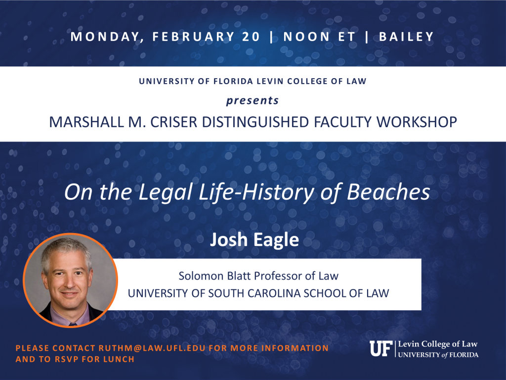 Josh Eagle, Solomon Blatt Professor of Law, University of South Carolina School of Law; presents. Please contact ruthm@law.ufl.edu for more information.