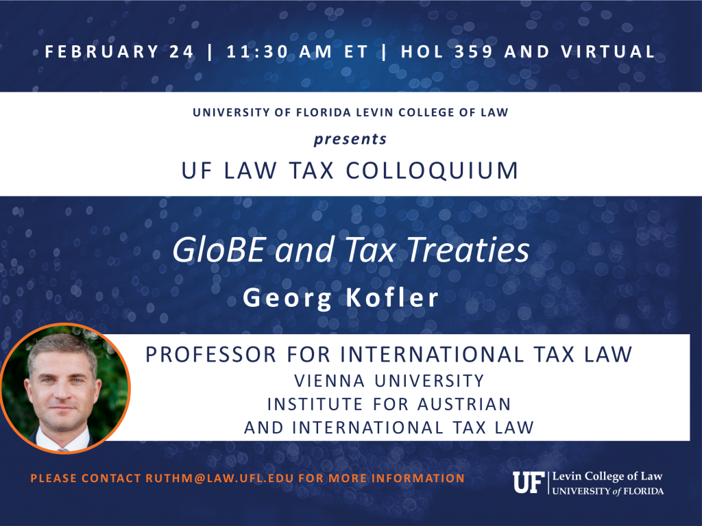 Georg Kofler, Visiting Professor of Law, University of Florida Levin College of Law; and Professor for International Tax Law, Vienna University Institute for Austrian and International Tax Law ; presents. Please contact ruthm@law.ufl.edu for more information.