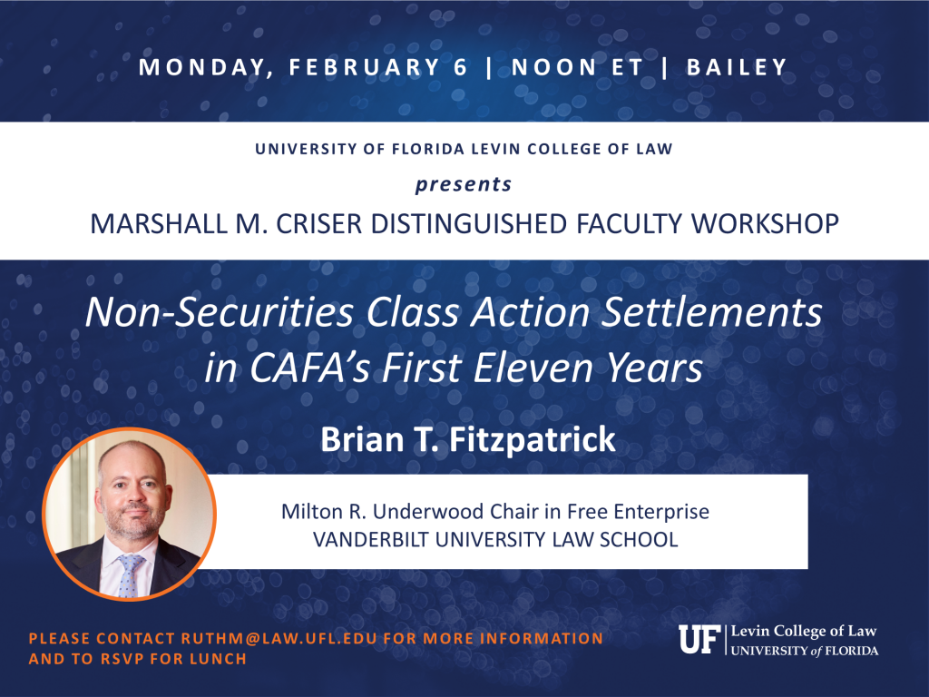 Brian Fitzpatrick, Milton R. Underwood Chair in Free Enterprise, Vanderbilt University Law School, presents. Please contact ruthm@law.ufl.edu for more information.