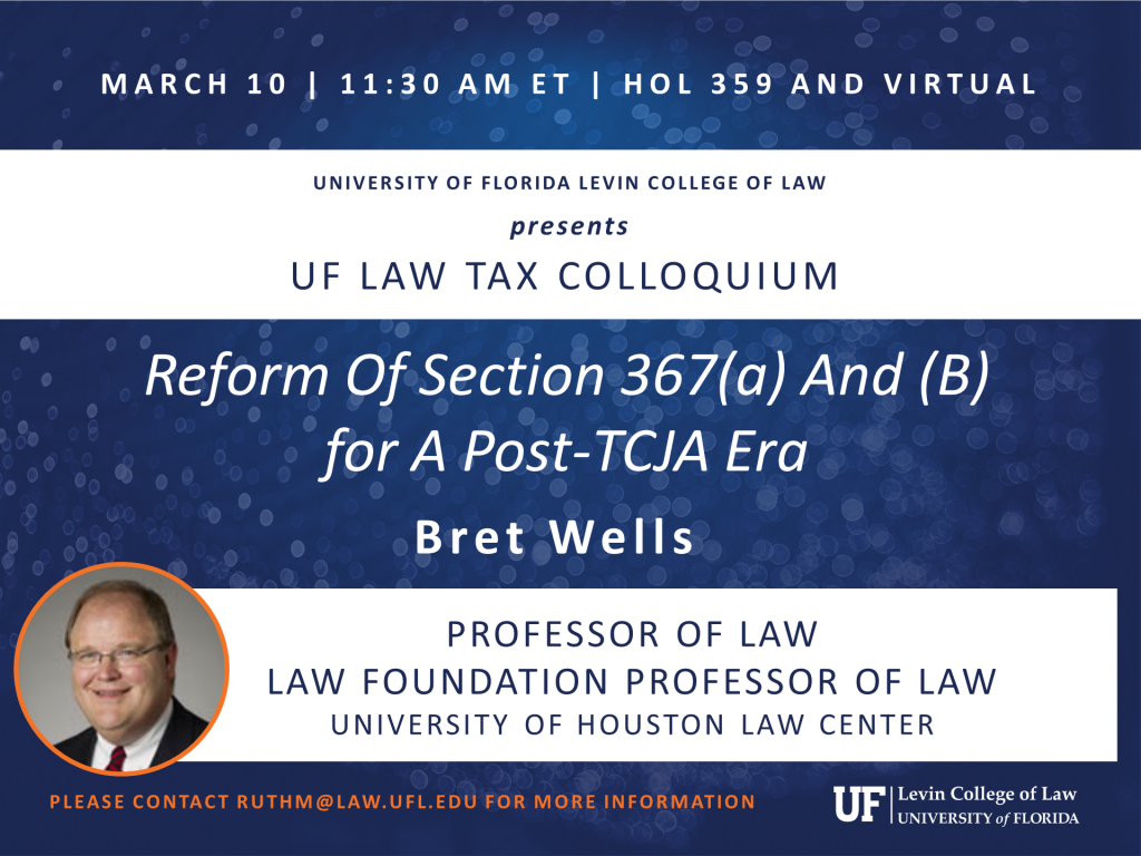 Bret Wells, Law Foundation Professor of Law, University of Houston Law Center, presents. Please contact ruthm@law.ufl.edu for more information.