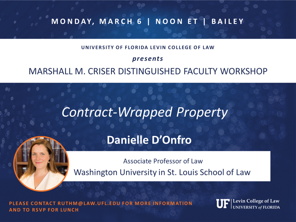 Danielle D’Onfro, Associate Professor of Law, Washington University in St. Louis School of Law, presents. Please contact ruthm@law.ufl.edu for more information.