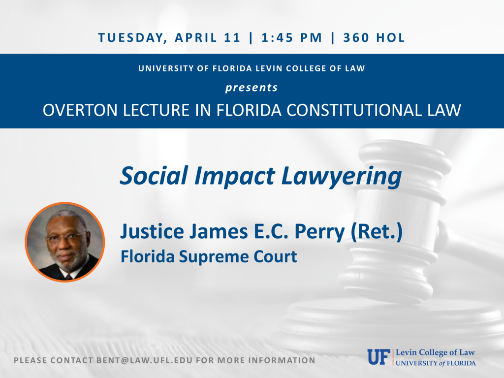 Justice James E.C. Perry (Ret.), Florida Supreme Court, presents. Please contact ruthm@law.ufl.edu for more information.