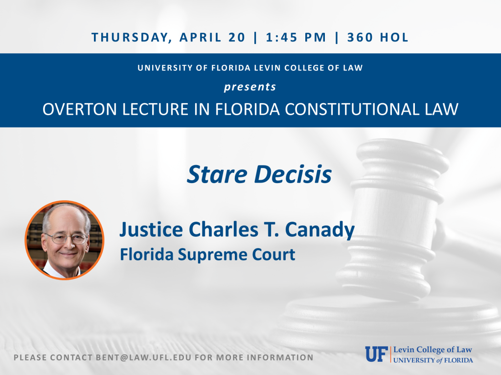 Justice Charles T. Canady, Florida Supreme Court, presents. Please contact ruthm@law.ufl.edu for more information.