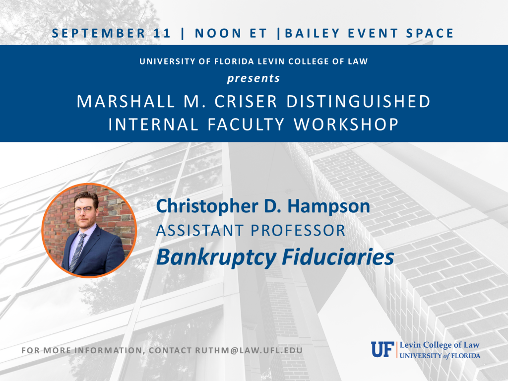 Christopher D. Hampson, Assistant Professor of Law, University of Florida Levin College of Law, presents. Please contact ruthm@law.ufl.edu for more information.