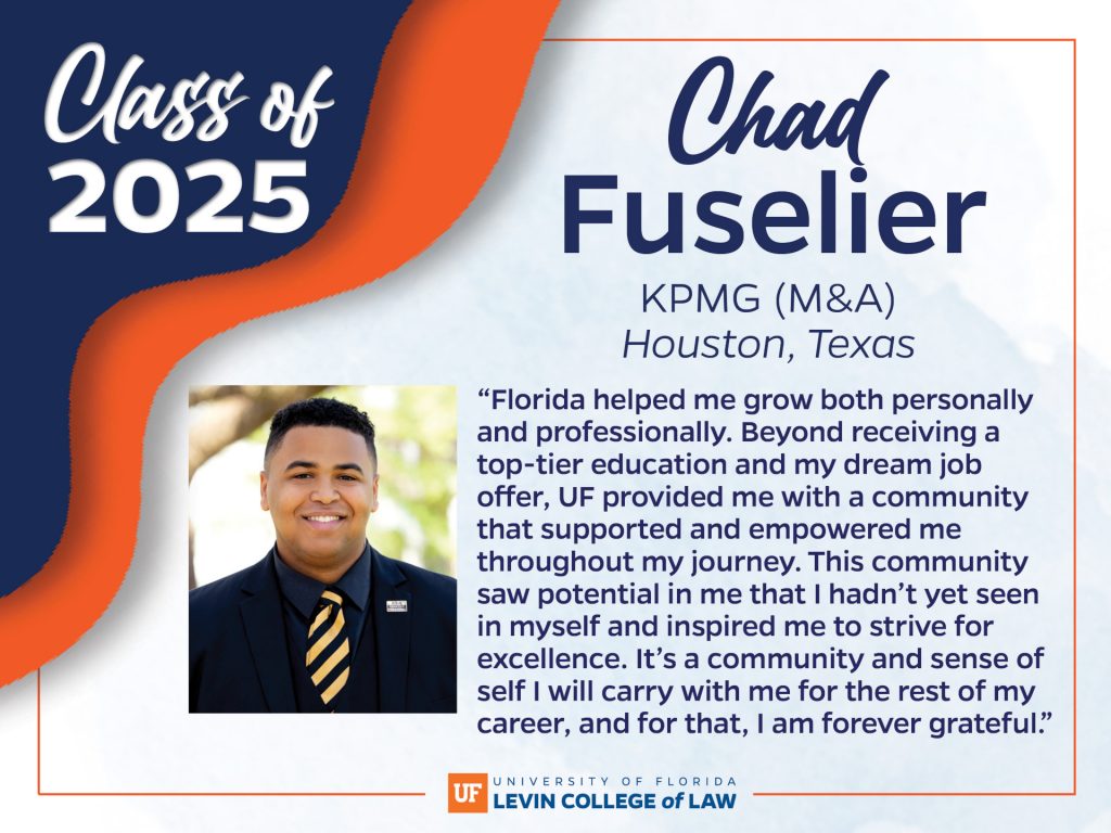 University of Florida Levin College of Law welcomed Joe Fluet (JD 99) as the Spring 2025 Commencement keynote speaker on Friday, May 16. Fluet graduated from UF Law in 1999 with high honors after returning from active military duty. He then went on to work for a large D.C. law firm before founding his own firm, Fluet & Huber (now Fluet).